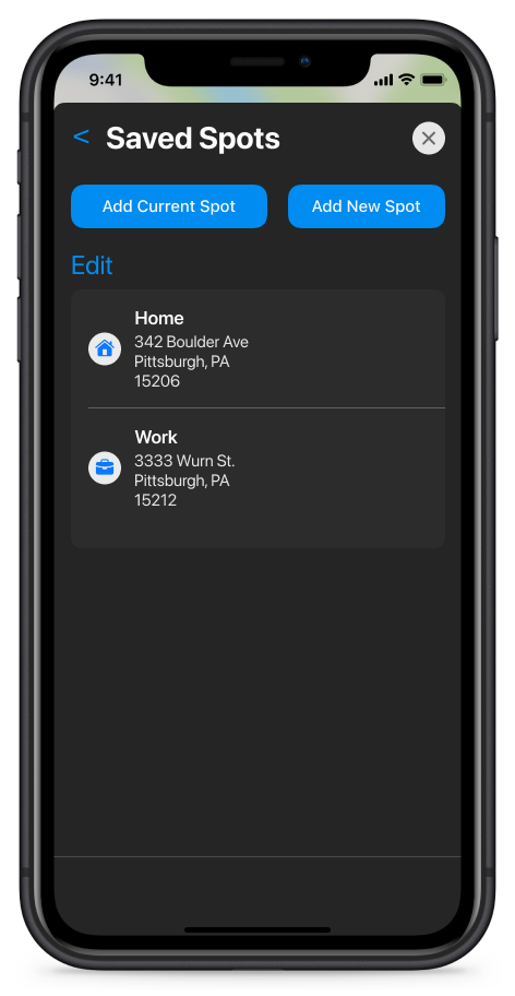 Add a frequently visited parking spot to your saved parking spots
