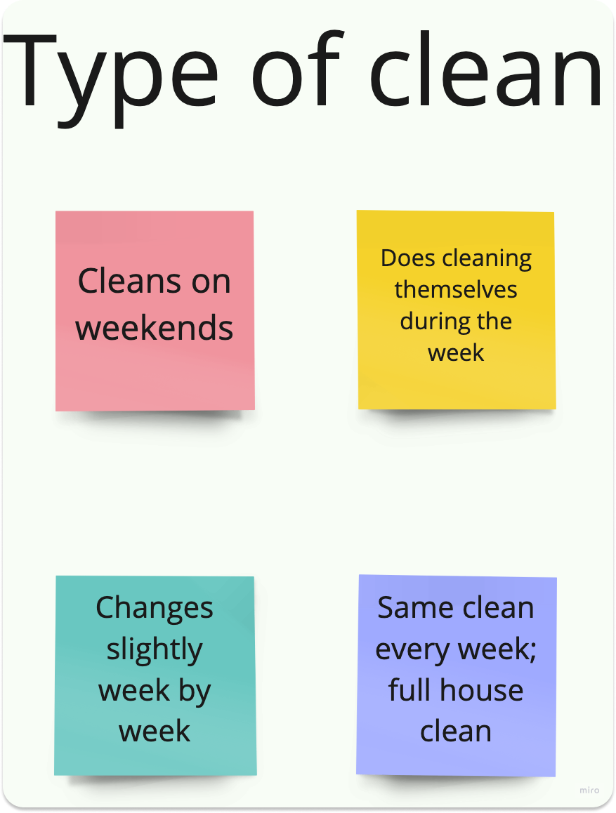 Unsurprisingly, client’s main motivations and interests lied in pricing and transparency. Surprisingly, people were interested in getting to know the actual people cleaning their house and wanting to know the company story. Both of these things help make their decisions to hire and whether or not they will stay consistent with their business. These things not only applied to cleaning, but buying/booking products and services in general.