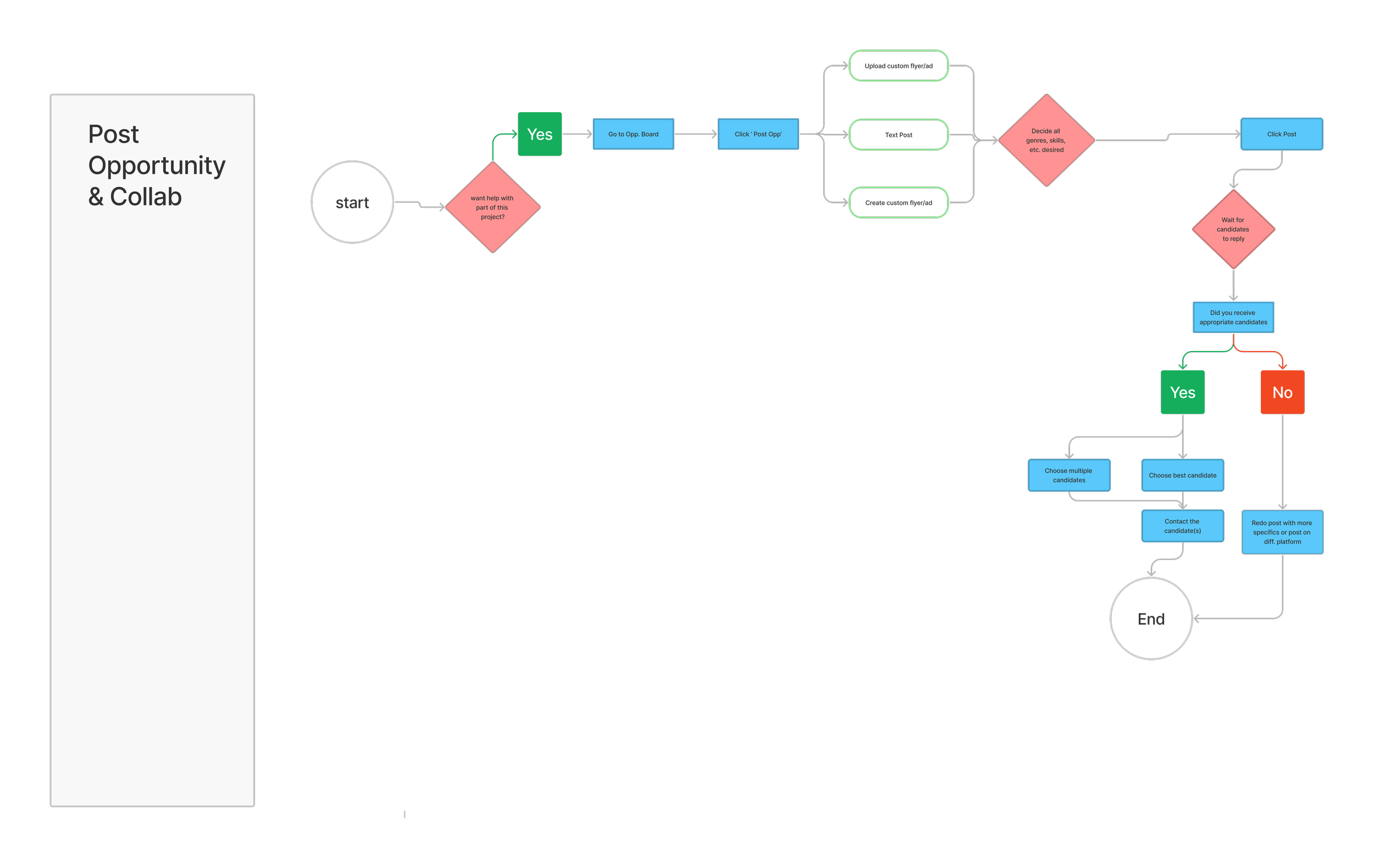 These are the competitor’s I explored. Most of them have one primary feature that they mainly focus on. There are secondary features that all seemed to be in early or beta stages. I noticed that most of the competitor’s would only be helpful on a more national level, ignoring local music scenes. These competitor’s operate on a ‘prime’ or paid for version that allows users advantages and more features. Similar to Linkedin. Some of them clearly have dealings with spam users that can hinder real connection and trust of the user. It overall seems good for bigger cities(New York, LA, etc.) rather than slightly smaller cities that could get more use out of the service.