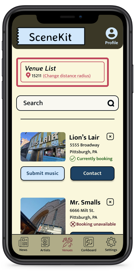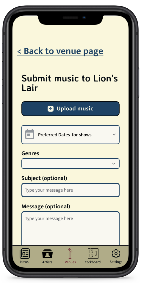 Create a ‘submit music’ for venues to make it easy for venues and artists to interact