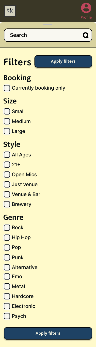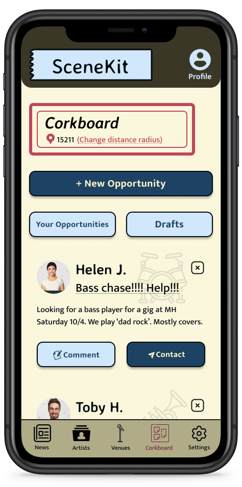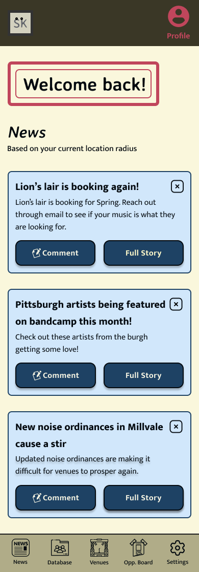 Overview: Developing an application that successfully connects local musicians and venues to each other to build a stronger community of artists that range in skill level and interest.
